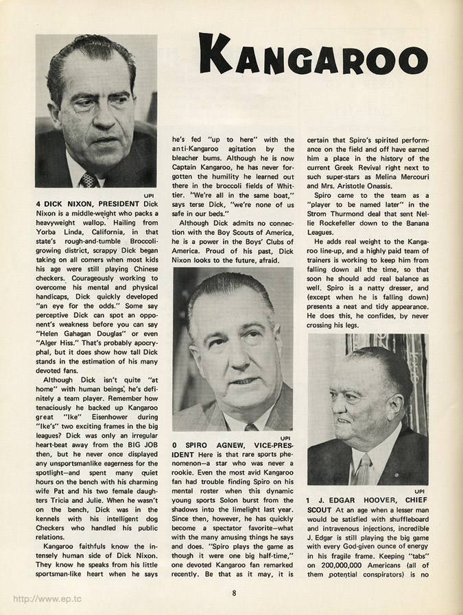 Presenting "The Chicago Conspiracy vs. The Washington Kangaroos" Official Pogrom for the 1969 Chicago Conspiracy Trial