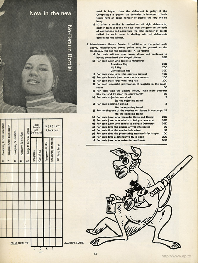 Presenting "The Chicago Conspiracy vs. The Washington Kangaroos" Official Pogrom for the 1969 Chicago Conspiracy Trial
