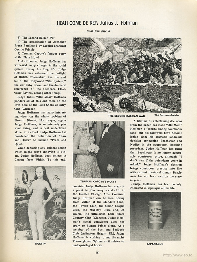 Official program (or pogrom, referring to hunted jews) sold and distributed outside Chicago Federal Courthouse during trial of the Chicago Seven/Eight (Abbie Hoffman, Jerry Rubin, David Dellinger, Tom Hayden, Rennie Davis, John Froines, and Lee Weiner - with Bobby Seale)