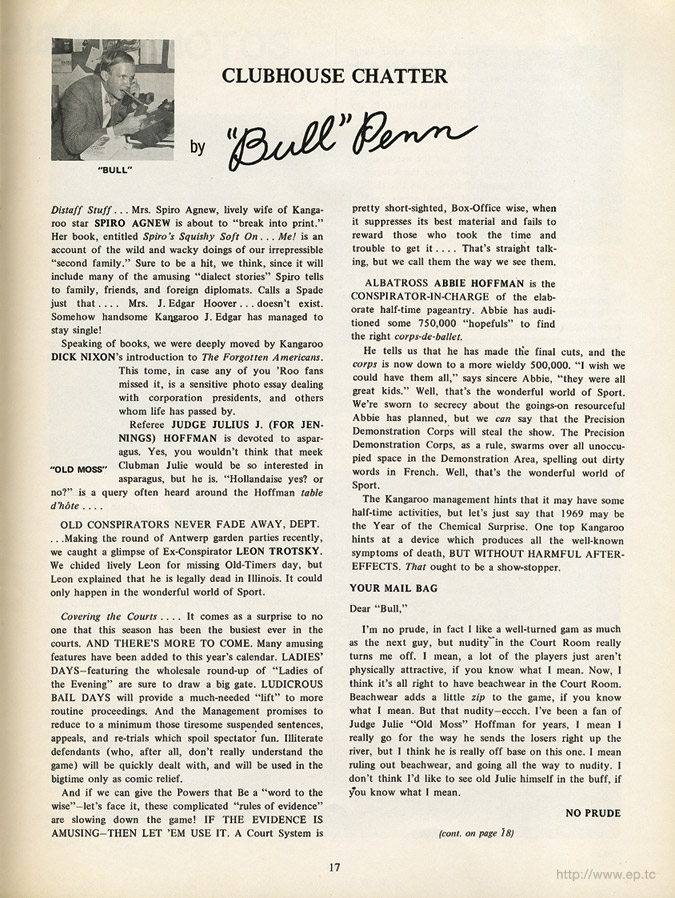 Presenting "The Chicago Conspiracy vs. The Washington Kangaroos" Official Pogrom for the 1969 Chicago Conspiracy Trial