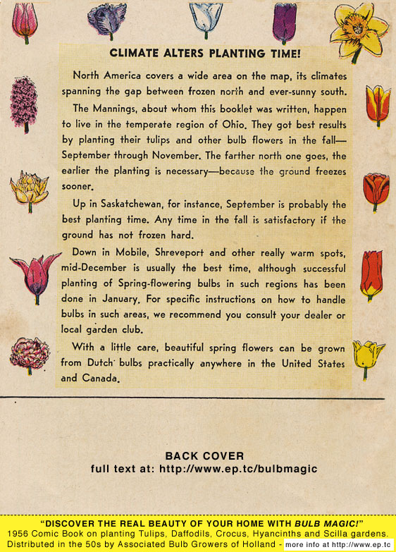 1950s Comic Book on planting Tulips, Daffodils, Crocus, Hyancinths and Scilla gardens. Distributed by Associated Bulb Growers of Holland, NYC