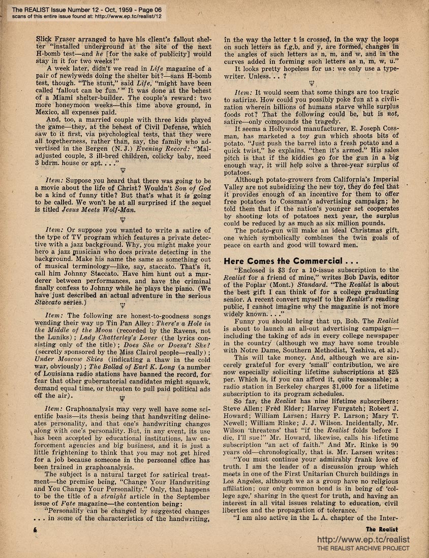 All original content copyright © The Realist Association and its contributing writers and artists -- Paul Krassner, Editor. Posted with Permission. Visit paulkrassner.com