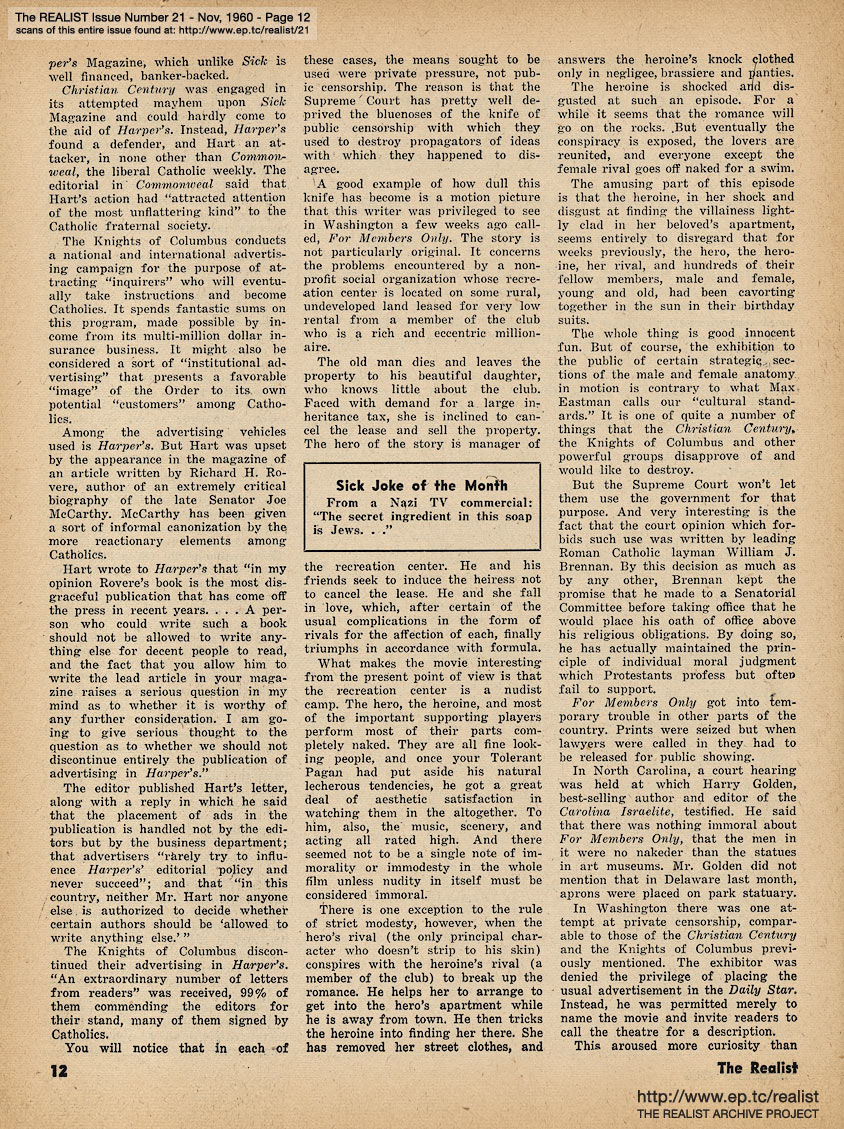 You are reading Issue No. 21 - Featuring The Myth of Space Travel, The Christian Century vs. Sick Humor and Sick Joke of the Month - November 1960
