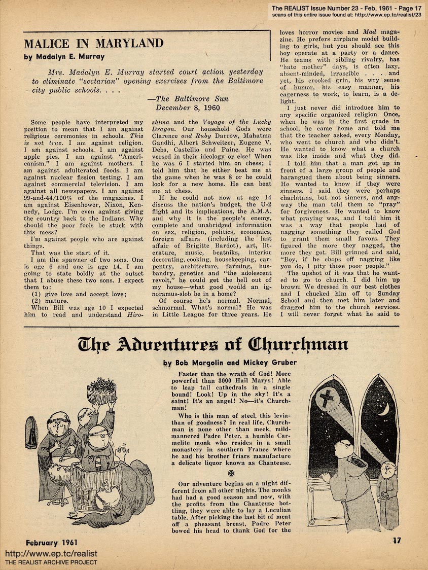 You are reading Issue No. 23 - Featuring An Impolite Interview with Jules Feiffer and The Adventures of Churchman - February, 1961