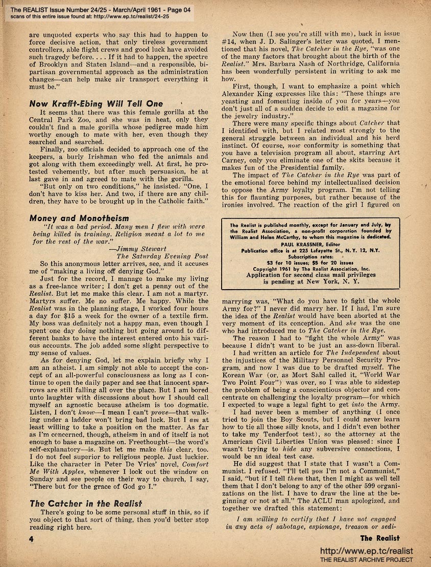 All original content copyright © The Realist Association and its contributing writers and artists -- Paul Krassner, Editor. Posted with Permission. Visit paulkrassner.com