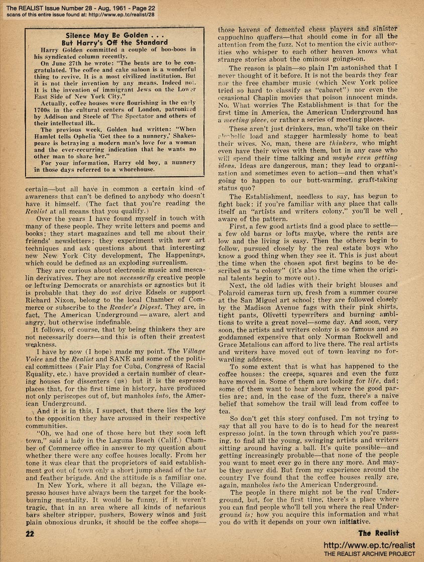 You are reading Issue No. 28 - Including An Impolite Interview with Shel Silverstein and The American Underground by John Wilcock- August, 1961
