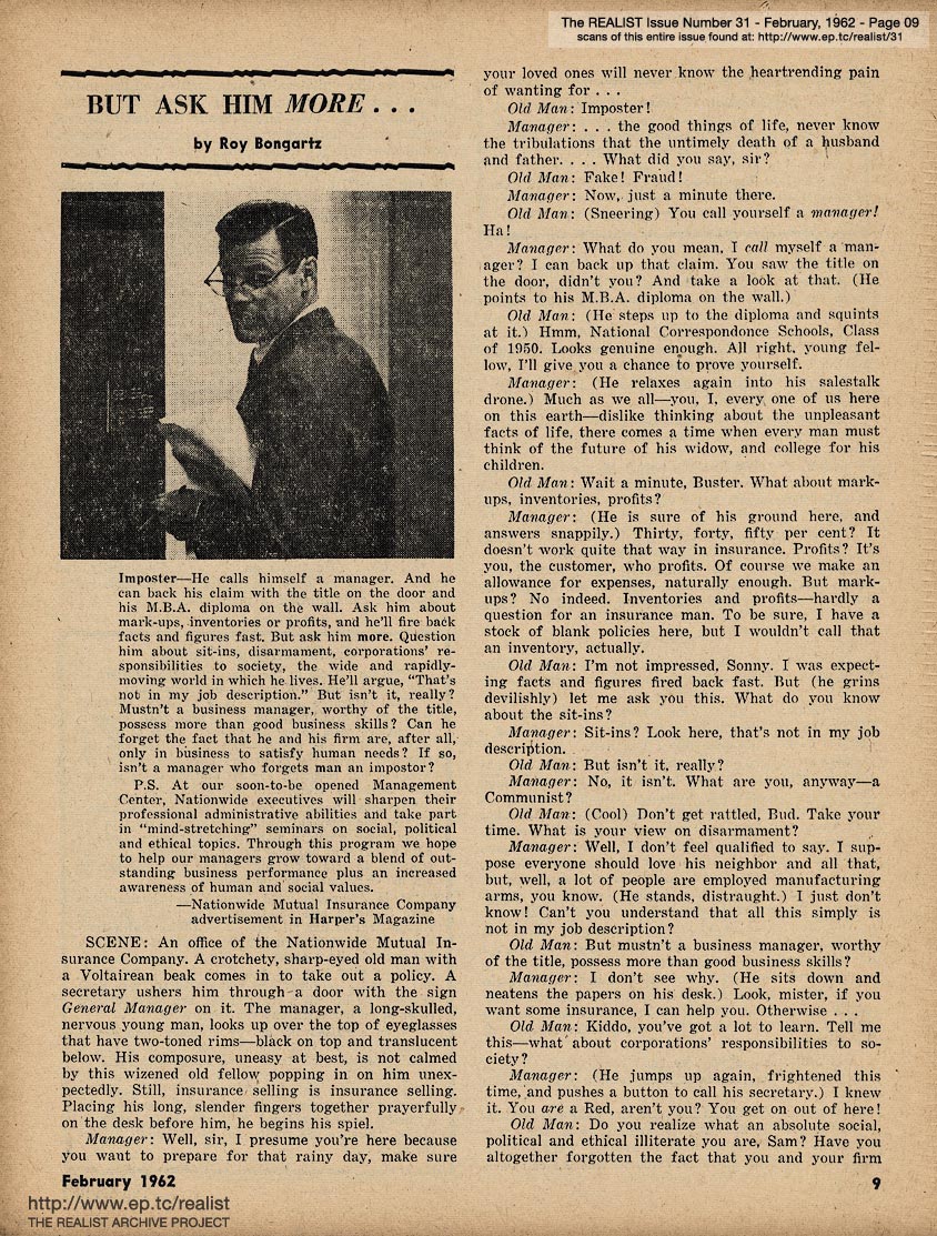 You are reading issue No. 31 - Including THE F.B.I. IN PEACE AND COLD WAR and AN IMPOLITE INTERVIEW WITH LENNY PERLMAN - February, 1962