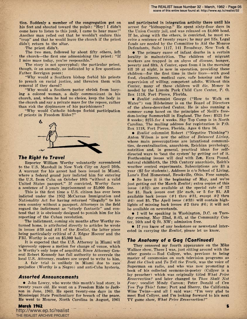 All original content copyright © The Realist Association and its contributing writers and artists -- Paul Krassner, Editor. Posted with Permission. Visit paulkrassner.com