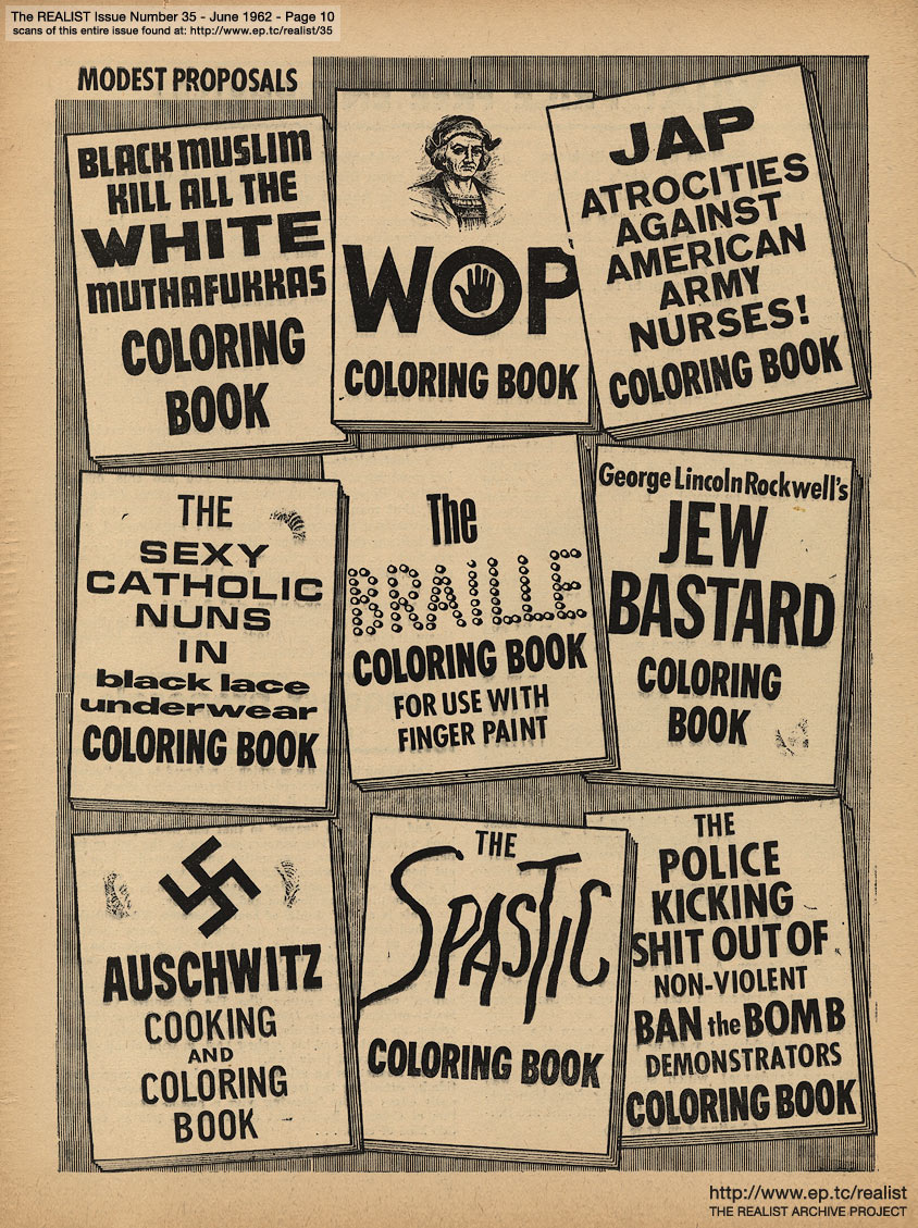You are reading Issue No. 35 - Featuring Modest Proposal's Realist Coloring Books and An Impolite Interview with an Abortionist - June, 1962