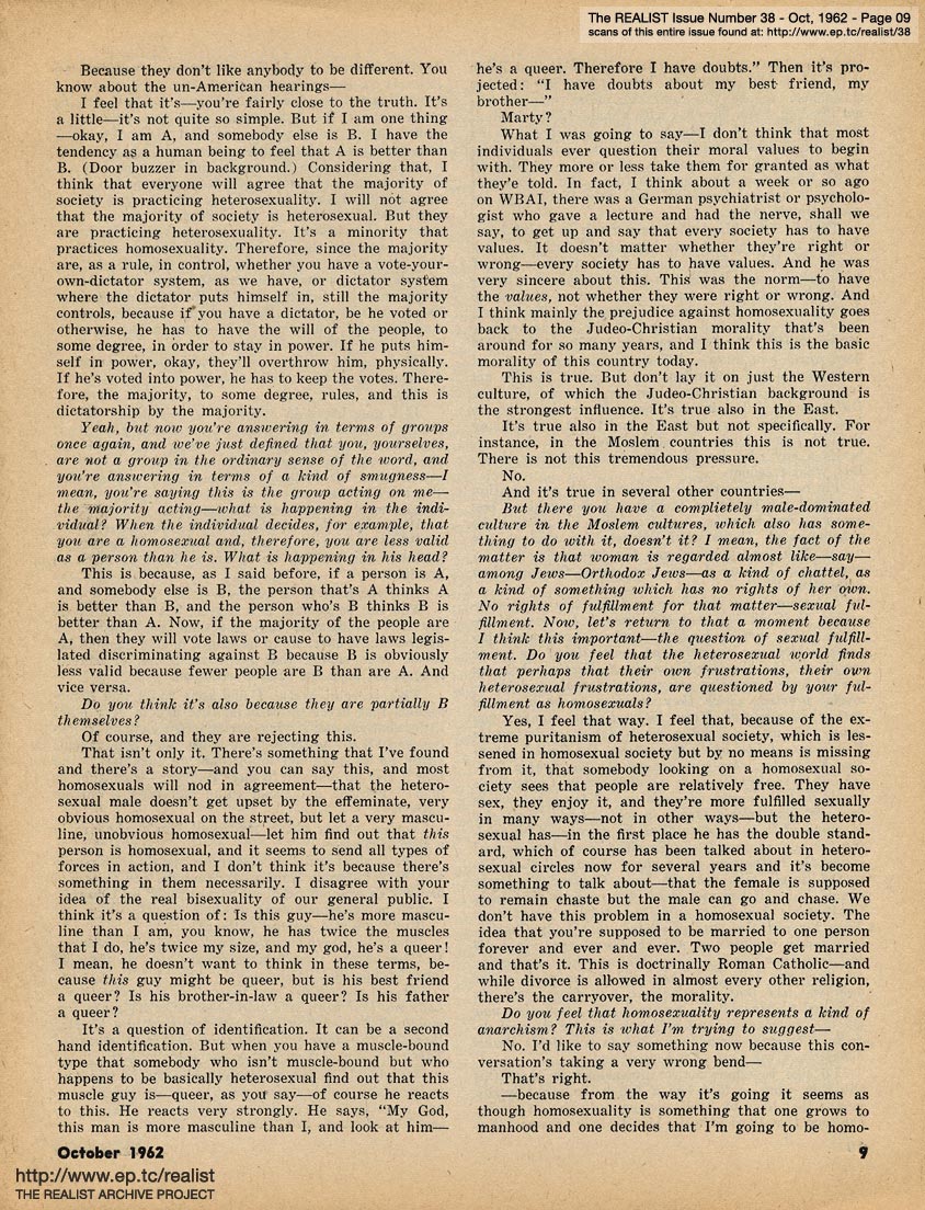 OCTOBER 1962 CONTENTS: Page 01: PSYCHOTHERAPY AND ATOMIC WARFARE by Albert Ellis, Ph.D. -- Page 02: EDITORIAL TYPE STUFF - In Praise of Tabloidsville and Hamminess, Inc. -- Page 03 -- Page 04 -- THRU A FALLOUT SHELTER DARKLY by Terry Carr -- Page 05: AN IMPOLITE INTERVIEW WITH DANNY DAVIS (with About the Interviewee) -- Page 06 -- Page 07 -- Page 08: May This House Be Safe From Pansies with LIVE AND LET LIVE Part Three (of Three) -- Page 09 -- Page 10 -- Page 11 -- Page 12 -- Page 13 -- Page 14: "THE PILL" Part Three (of Three) -- Page 15 -- Back Cover: (Illos: Repeat Ye Sinners)