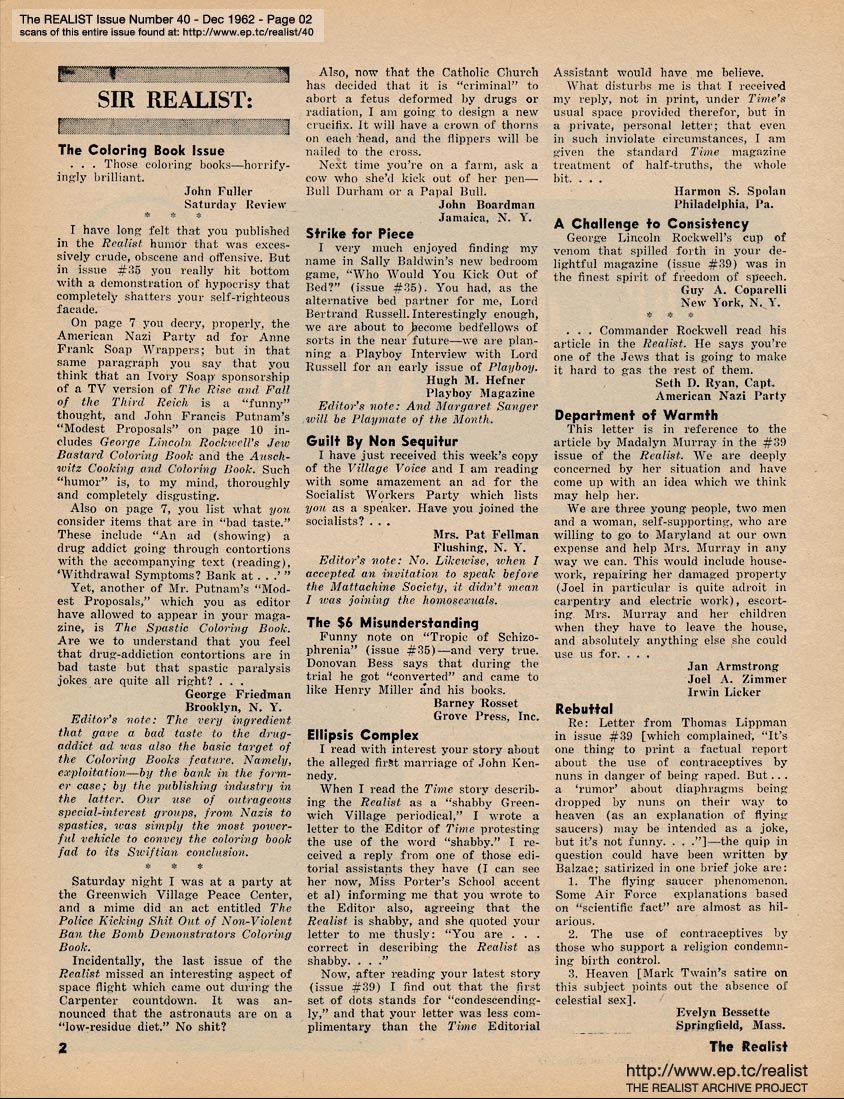 a complete and unexpurgated republishing of all 146 issues (including supplements and related ephemera) of The Realist (historic underground magazine, more information)