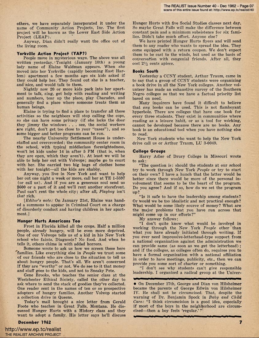 a complete and unexpurgated republishing of all 146 issues (including supplements and related ephemera) of The Realist (historic underground magazine, more information)
