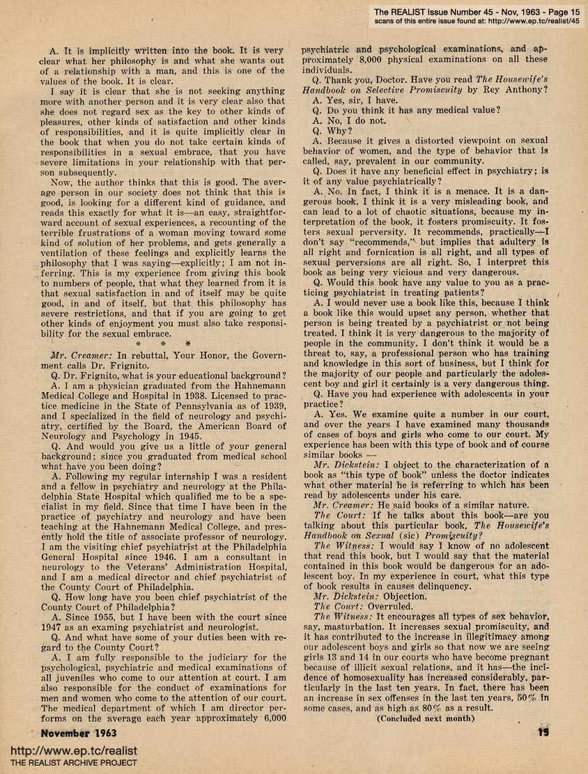 You are reading Issue No. 45 - November, 1963 - Featuring The Trial of Eros Magazine - Part Two of Three (read Part One)