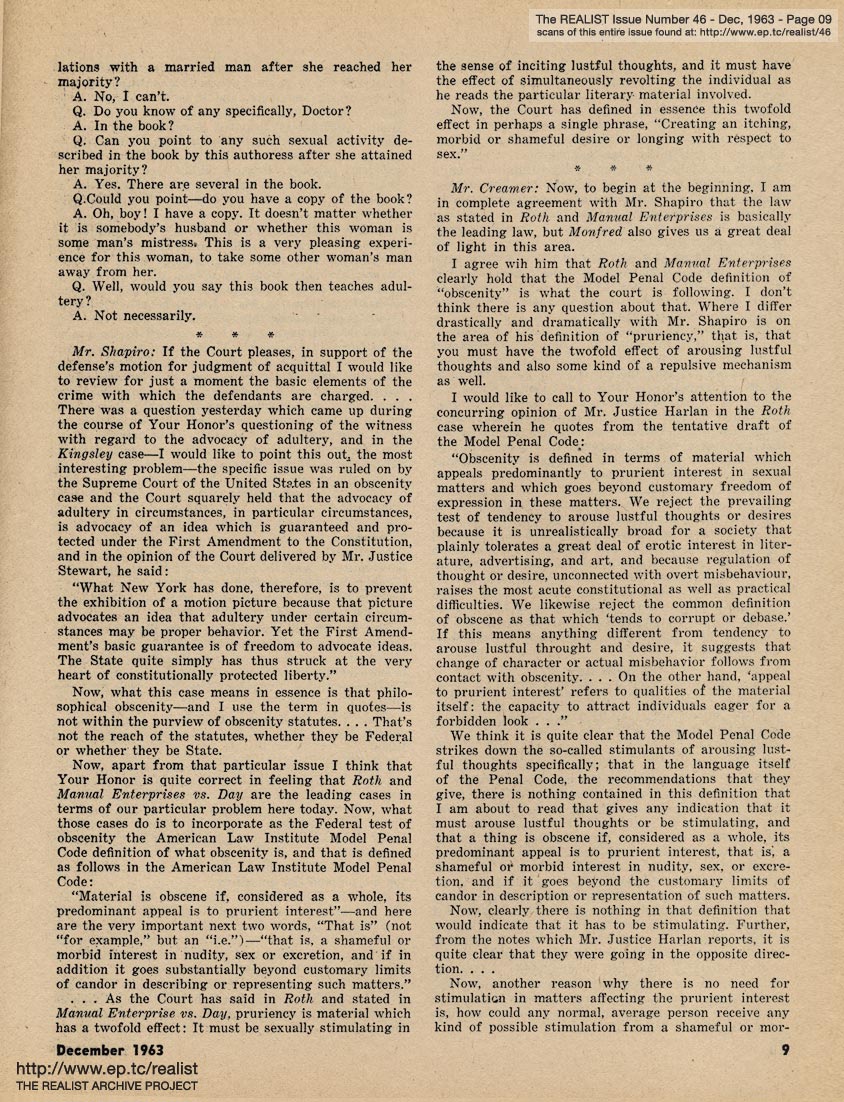 You are reading Issue No. 46 - November, 1963 - Featuring The Trial of Eros Magazine - Part Three of Three (read Part One and Part Two)