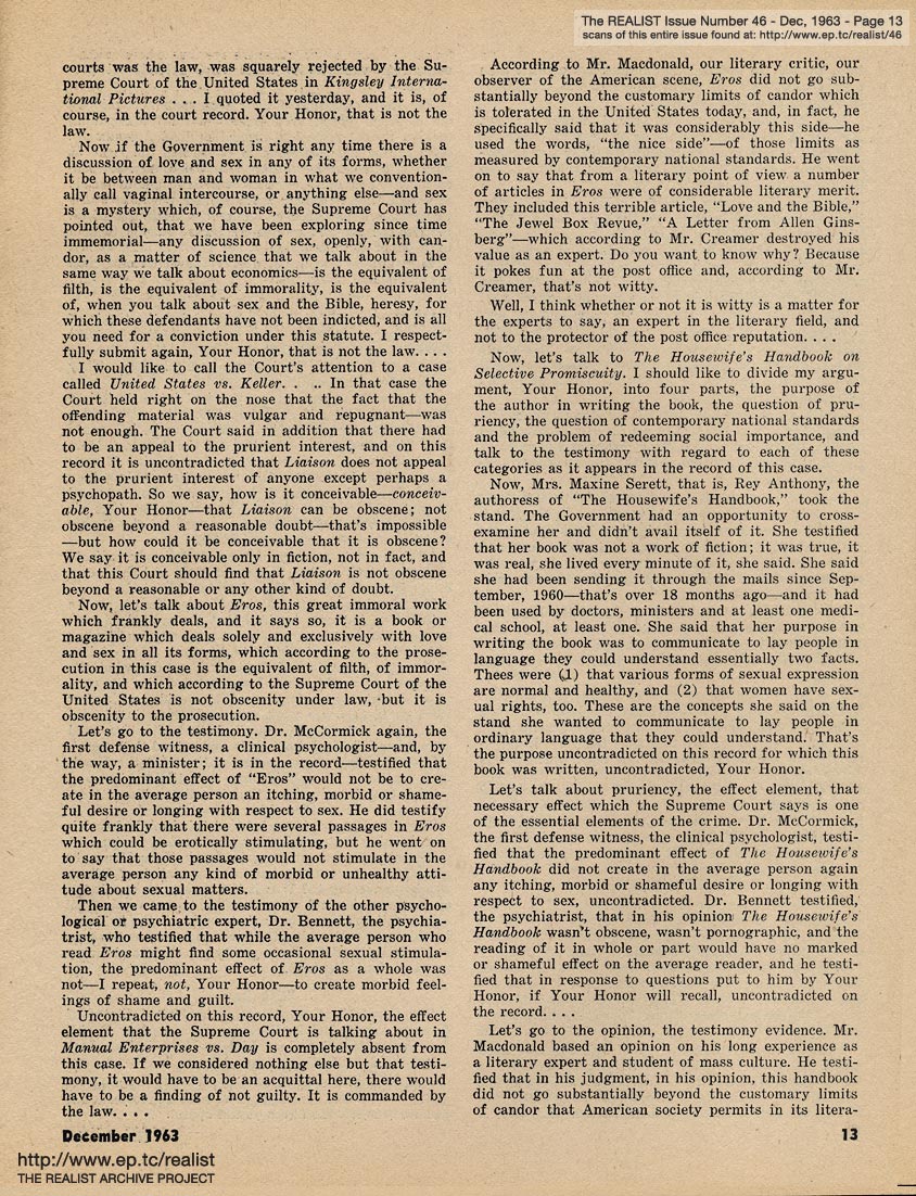 You are reading Issue No. 46 - November, 1963 - Featuring The Trial of Eros Magazine - Part Three of Three (read Part One and Part Two)