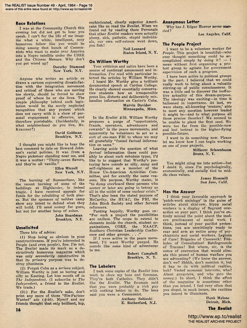 You are reading Issue No. 49 - April, 1964 - The LETTERS TO THE EDITOR Issue