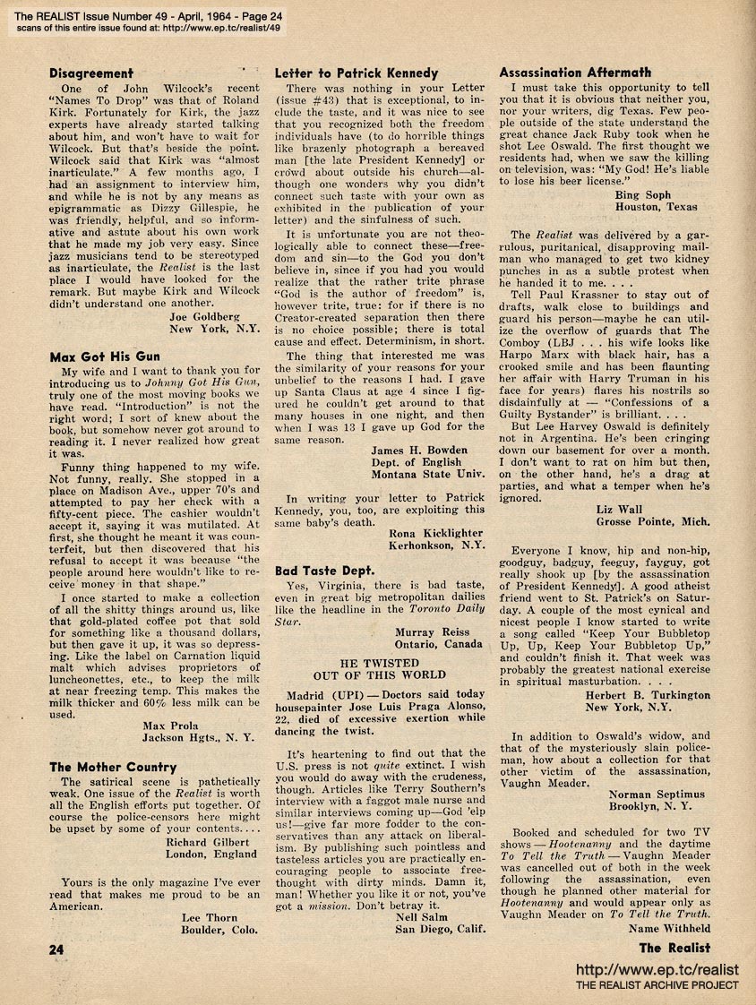 You are reading Issue No. 49 - April, 1964 - The LETTERS TO THE EDITOR Issue