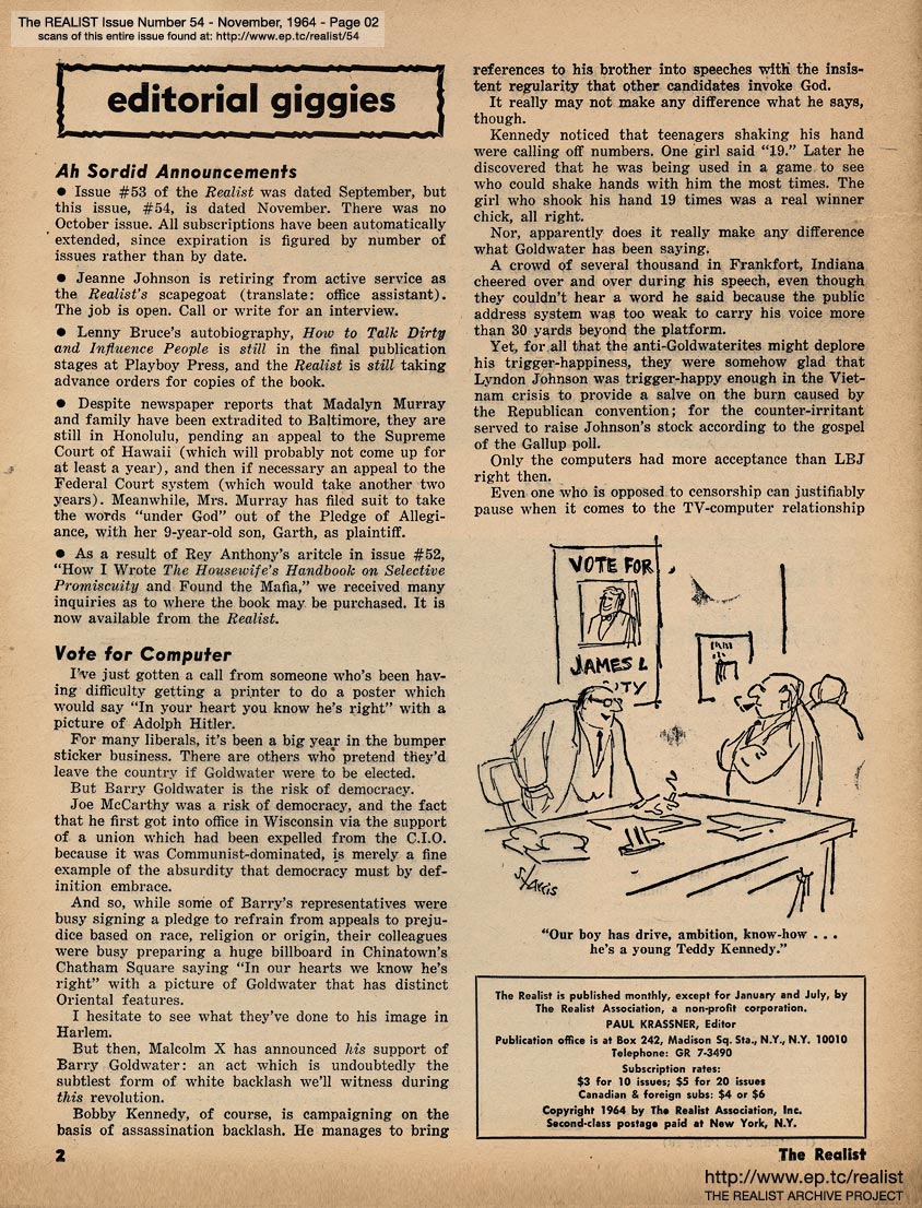 You are reading issue No. 54 - Including The Fecalphiles by Lenny Bruce - November, 1964