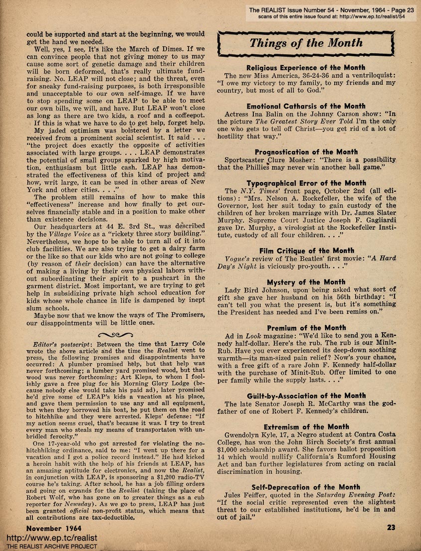 a complete and unexpurgated republishing of all 146 issues (including supplements and related ephemera) of The Realist (historic underground magazine, more information)