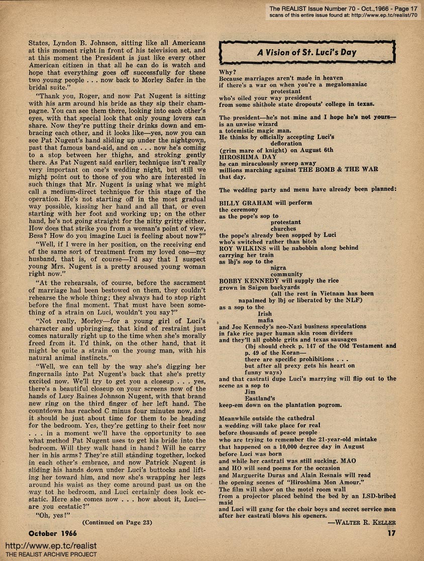 You are reading Issue No. 70 - Featuring Birth Control for the Poor and Rake Up All the Junk and Burn It - Dec 1966