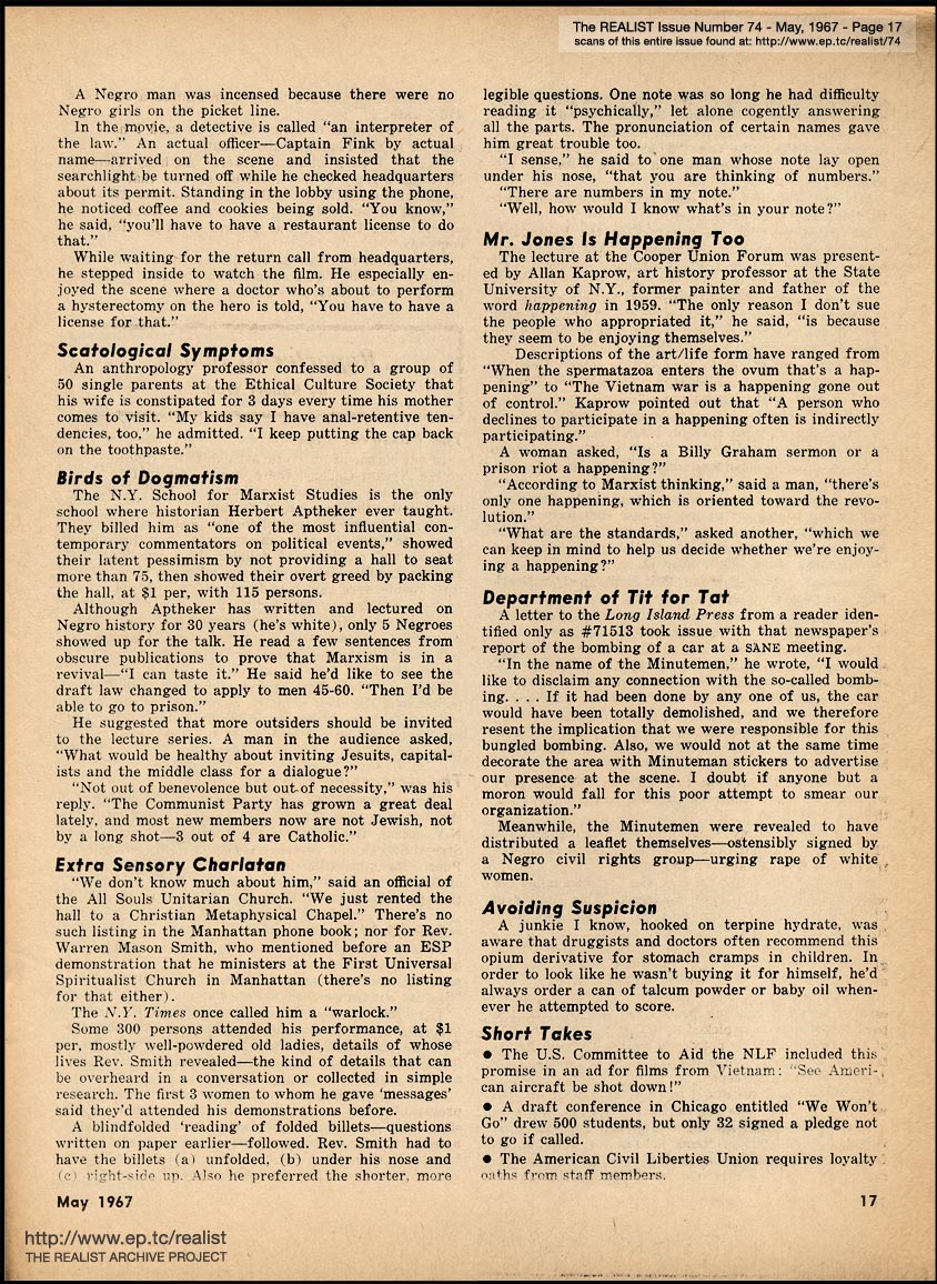 writers and artists -- Paul Krassner, Editor. Posted with Permission.