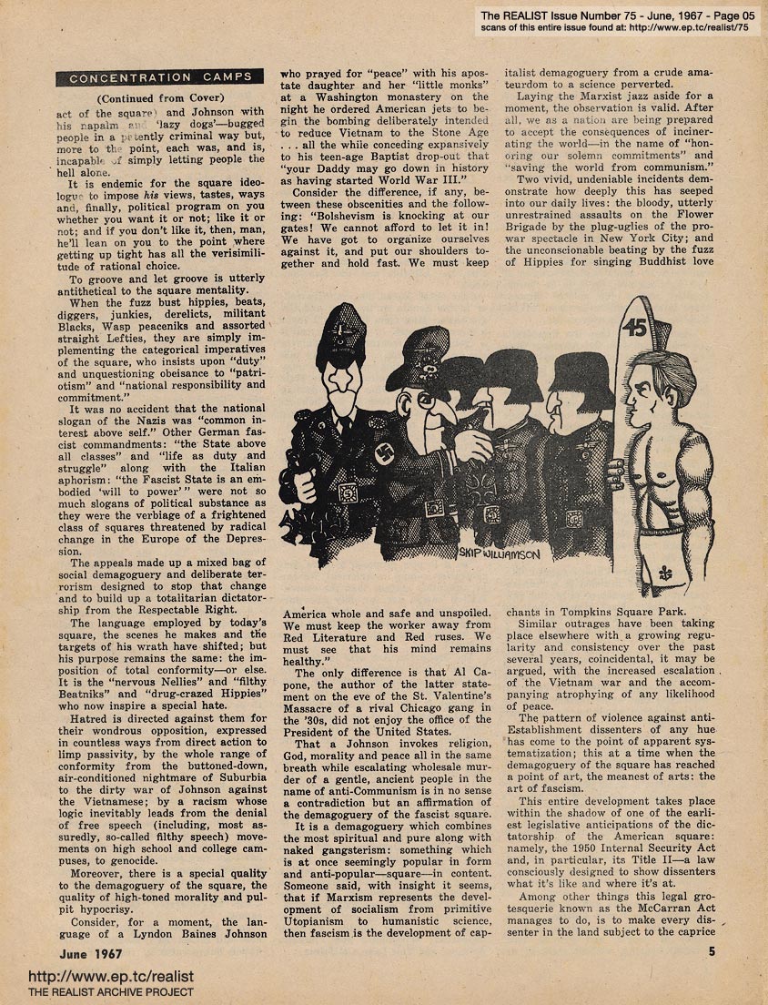 01: CASE HISTORY OF THE MANCHESTER CAPER by Paul Krassner - LEGAL AND ACTUAL CONCENTRATION CAMPS IN AMERICA by Charles R Allen, Jr - and BLOW-UP, PSYCHEDELIC SEXUALIS AND THE WAR GAME --OR, DAVID HEMMINGS IS HERMAN KAHN IN DISGUISE --
