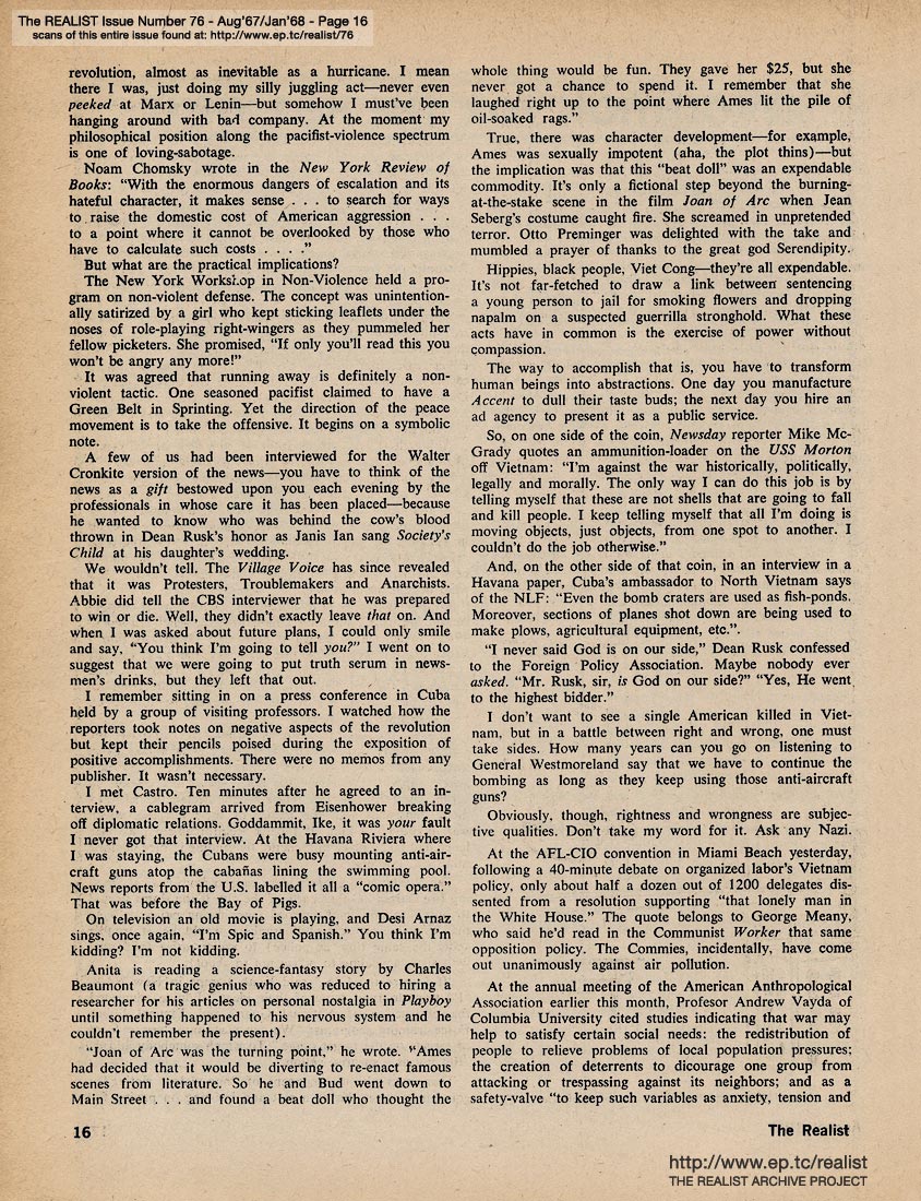 are reading issue No. 76 - Including How I Lost the War by Abbie Hoffman, and