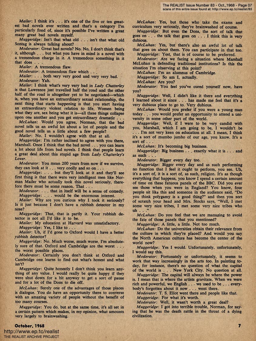 You are reading Issue No. 83 - Featuring NORMAN MAILER, MARSHALL McLUHAN and MALCOLM MUGGERIDGE: ON OBSCENITY