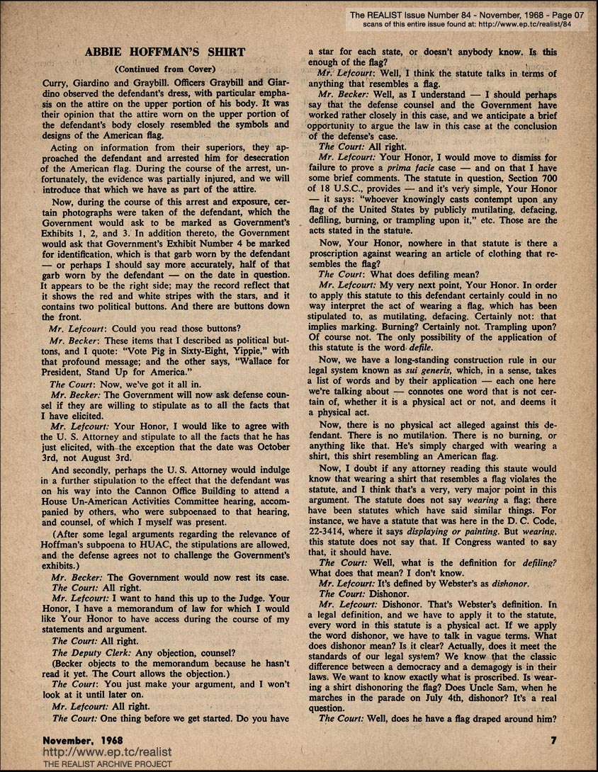 THE TRIAL OF ABBIE HOFFMAN'S SHIRT by the United States Government