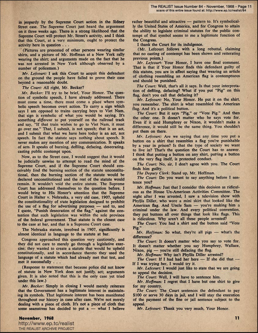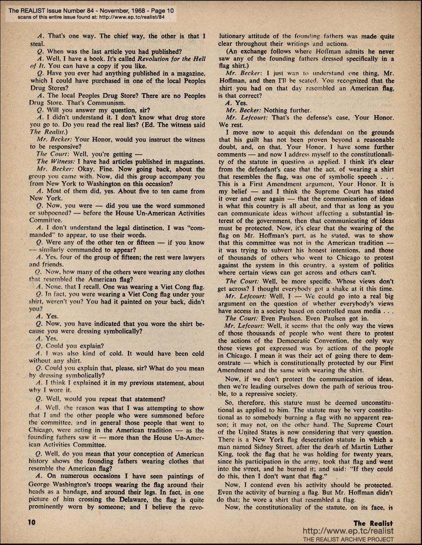 THE TRIAL OF ABBIE HOFFMAN'S SHIRT by the United States Government