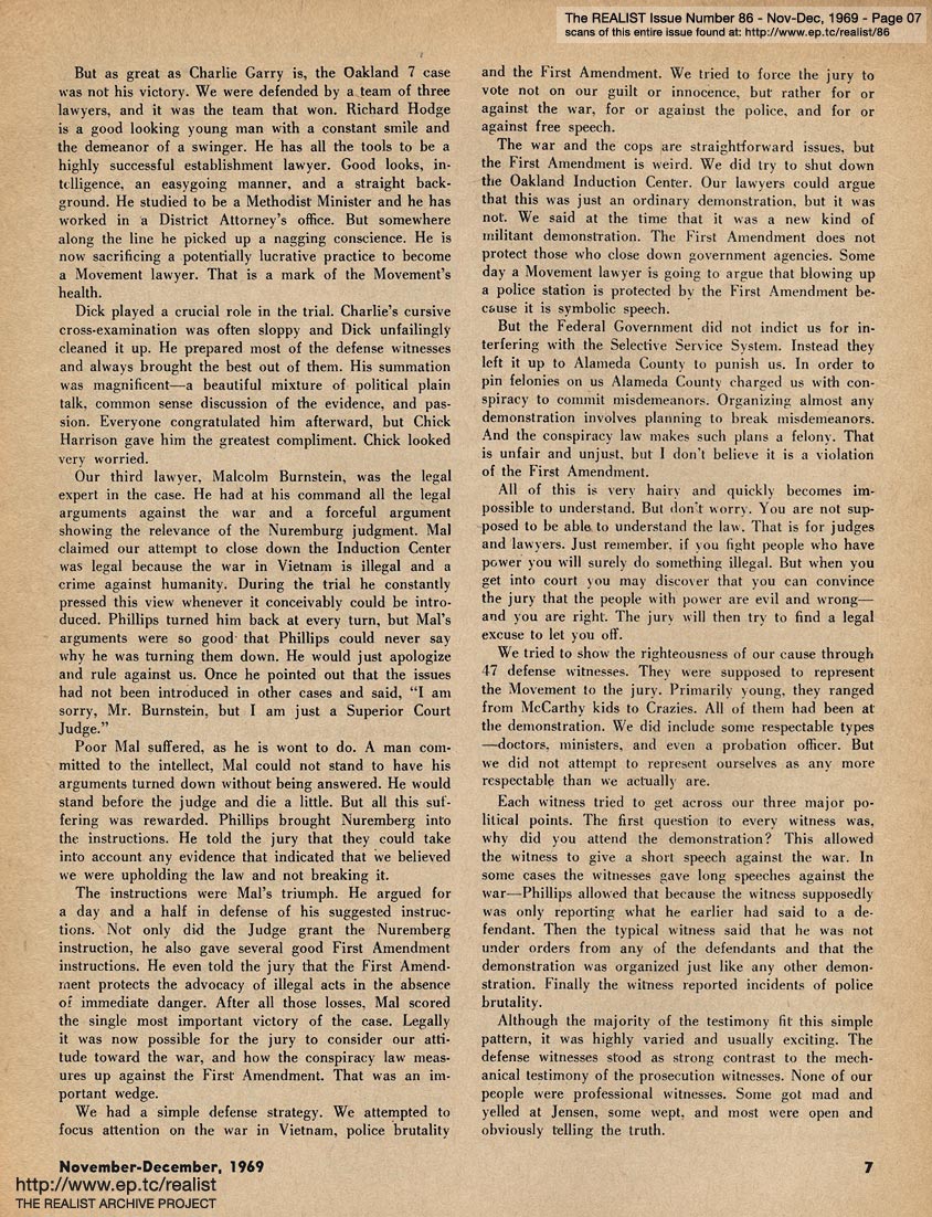You are reading Issue No. 86 - Nov/Dec, 1969 - Featuring The HOG FARM by Hugh Romney and OAKLAND 7 by Frank Bardacke