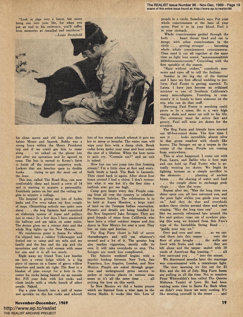 For more on Hog Farm, see "Wavy Gravy Raps" from issue 88 (includes wedding) and for more on the Oakland 7, see "A Day In the Life" by Reese Erlich from issue 85.