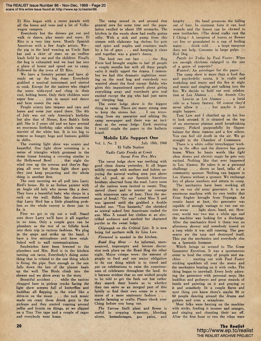 You are reading Issue No. 86 - Nov/Dec, 1969 - Featuring The HOG FARM by Hugh Romney and OAKLAND 7 by Frank Bardacke