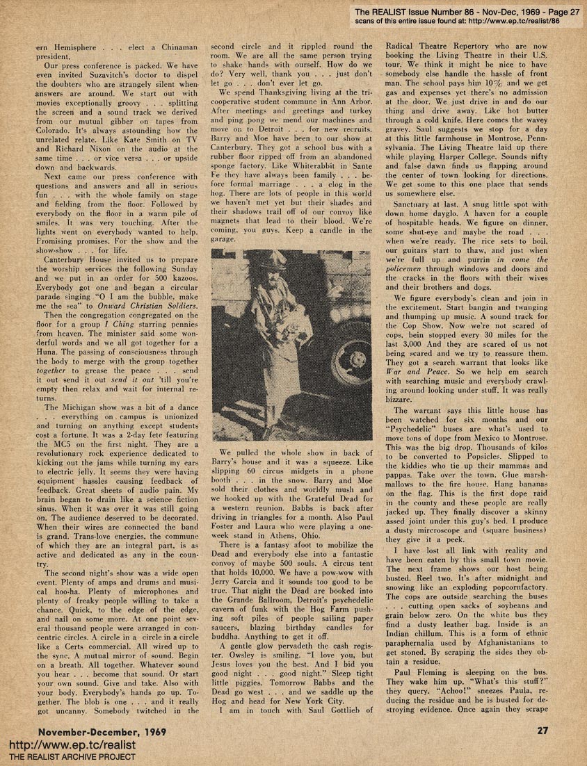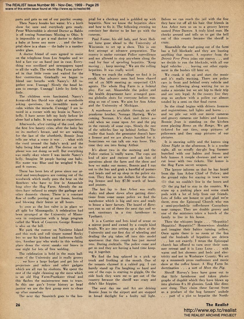 You are reading Issue No. 86 - Nov/Dec, 1969 - Featuring The HOG FARM by Hugh Romney and OAKLAND 7 by Frank Bardacke