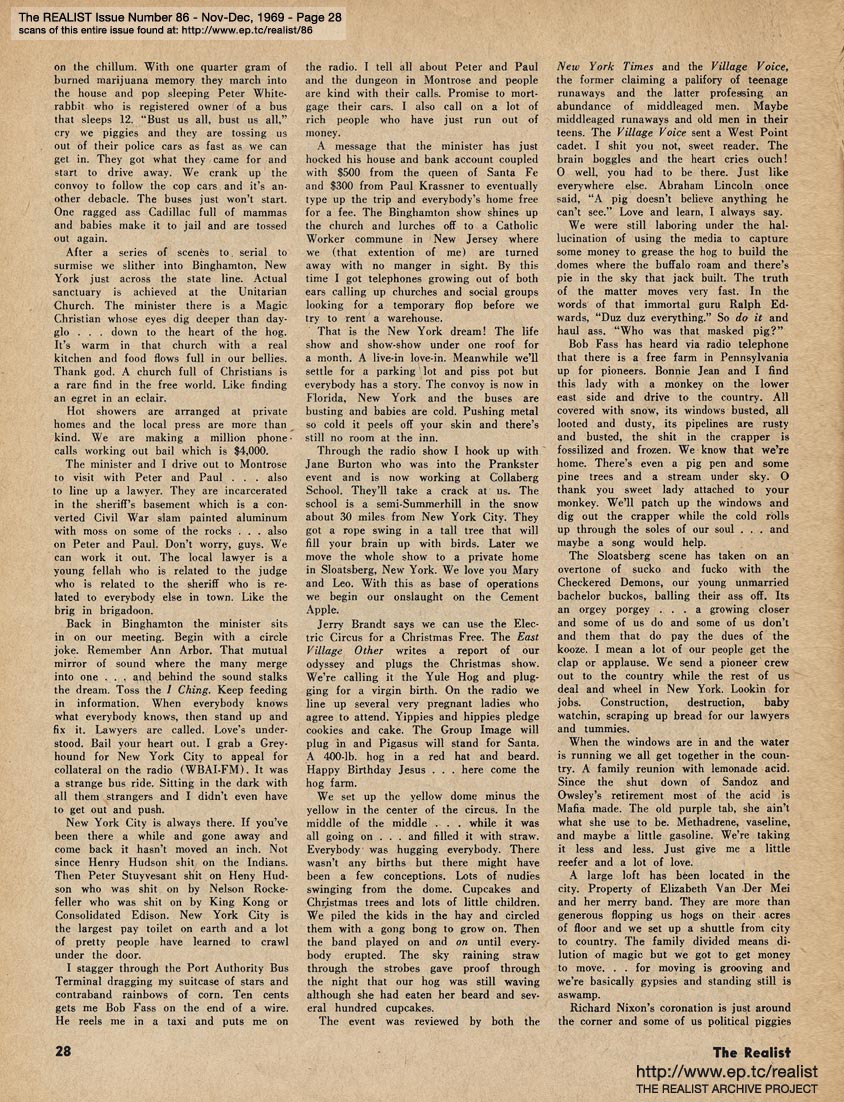 For more on Hog Farm, see "Wavy Gravy Raps" from issue 88 (includes wedding) and for more on the Oakland 7, see "A Day In the Life" by Reese Erlich from issue 85.