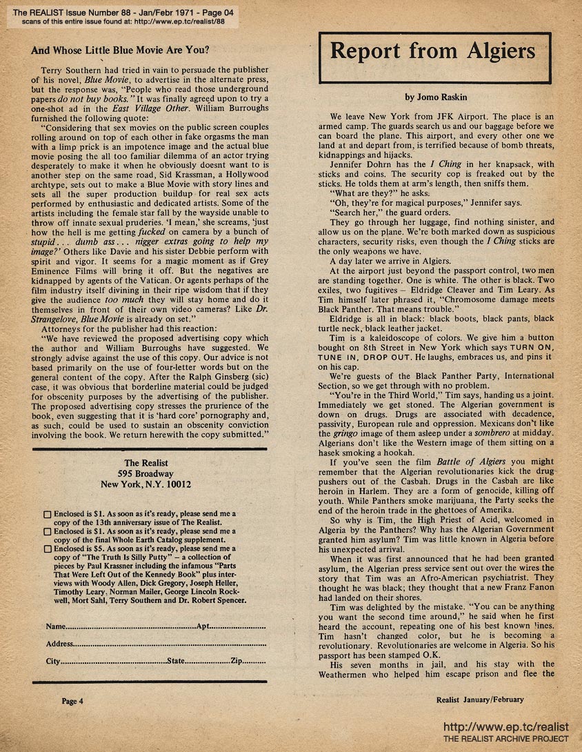 supplements and related ephemera) of The Realist (historic underground
