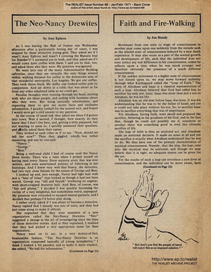 All original content copyright © The Realist Association and its contributing writers and artists -- Paul Krassner, Editor. Posted with Permission. Visit paulkrassner.com